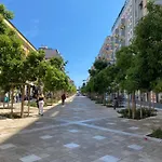 寝室1室のCasa Letizia Pescara Centro ペスカ-ラアパ-トはポンテ デル マ-レから2キロメ-トルに位置し,宿泊から800メ-トル離れたPescara鉄道駅へ行きやすいです.